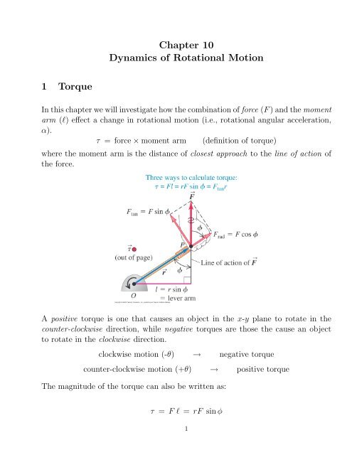 Chapter 10 Dynamics Of Rotational Motion 1 Torque